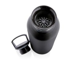 Butelka termiczna 600 ml, proszkowa powłoka, podwójne ścianki, zakrętka 2 w 1 z wyjmowanym sitkiem do zaparzania herbaty lub dodawania do wody owoców i ziół, ustnik do sączenia napojów i dodawania kostek lodu, wewnątrz stal nierdzewna 304, stal nierdzewna 201 na zewnątrz, utrzymuje temperaturę napojów gorących do 20 godzin oraz zimnych do 15 godzin