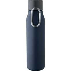 Butelka termiczna 600 ml, uchwyt ułatwiający przenoszenie, utrzymuje temperaturę napojów – ciepłych do 6 godzin, zimnych do 9 godzin, na przedniej części ikona aluminium z recyklingu na produkcie, pakowana pojedynczo w brązowe kartonowe pudełko, wnętrze wykonane ze stali nierdzewnej 304, zewnętrzna warstwa ze stali nierdzewnej 201,szczelna czarna nakrętka z PP, aluminiowy karabińczyk