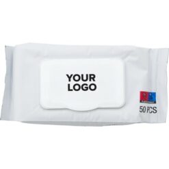 Chusteczki z alkoholem, 50 szt. z nadrukiem Twojego logo, kolor: biały