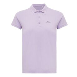 Koszulka polo, damska, zapięcie na 3 guziki, krój medium, splot Pique, krótkie rękawy, wykonana w 50% z bawełny z recyklingu i w 50% z bawełny organicznej o gramaturze 220 g/m2, bez dodatku poliestru, posiada wbudowany znacznik AWARE™, który potwierdza wykorzystanie materiałów z recyklingu, posiada kod QR na metce, który prowadzi do cyfrowego paszportu produktu, 2% wpływów z każdego sprzedanego produktu jest przekazywane na rzecz Water.org