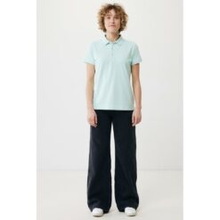 Koszulka polo, damska, zapięcie na 3 guziki, krój medium, splot Pique, krótkie rękawy, wykonana w 50% z bawełny z recyklingu i w 50% z bawełny organicznej o gramaturze 220 g/m2, bez dodatku poliestru, posiada wbudowany znacznik AWARE™, który potwierdza wykorzystanie materiałów z recyklingu, posiada kod QR na metce, który prowadzi do cyfrowego paszportu produktu, 2% wpływów z każdego sprzedanego produktu jest przekazywane na rzecz Water.org