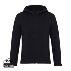 Damska kurtka softshell, wykonana z poliestru z recyklingu, 3 warstwowy materiał o gramaturze 300 g/m2, miękki polar wewnątrz, zapięcia mankietów na rzep, kaptur z regulacją, 2 kieszenie zamykane na zamek, wodoodporna dzięki zastosowanej technologii BIONIC-FINISH® ECO, wiatroszczelna i oddychająca konstrukcja, posiada certyfikat OEKO-TEX® STANDARD 100, posiada znacznik AWARE™, który gwarantuje, że wykorzystane materiały pochodzą z recyklingu, 2% wpływów z każdego sprzedanego produktu z kolekcji Impact jest przekazywane na rzecz Water.org, ślad węglowy produktu: 16,01 kg CO2