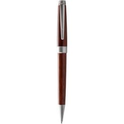 Długopis przekręcany ze srebrnymi elementami, w drewnianym etui