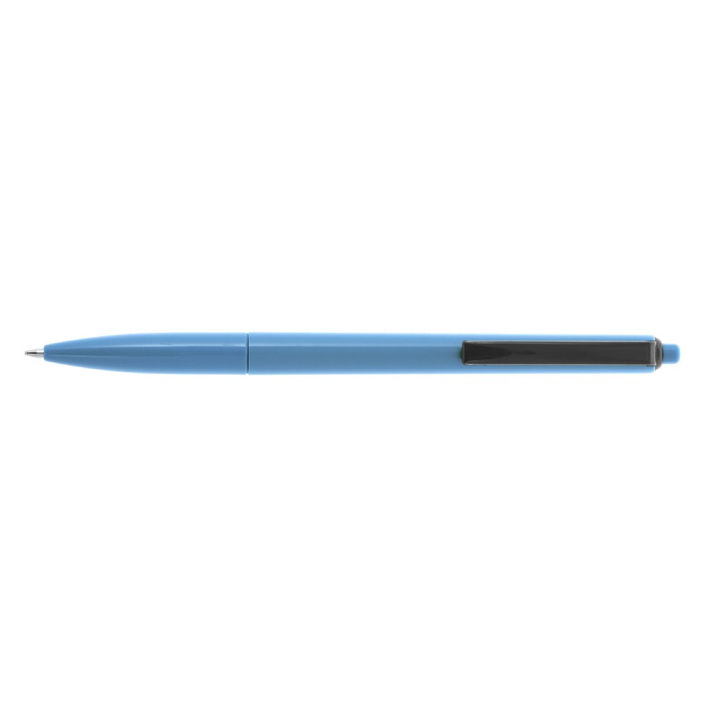 Długopis z kolorowym trzonem i czarnym klipem, wkład w niebieskim kolorze, produkt wykonany z plastiku