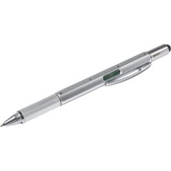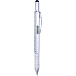 Długopis wielofunkcyjny, linijka, poziomica, touch pen z nadrukiem Twojego logo, materiał: plastik, kolor: srebrny