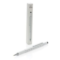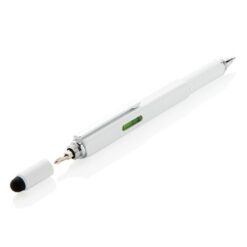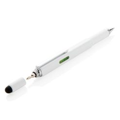 Długopis wielofunkcyjny 5 w 1, linijka 7 cm, poziomica, śrubokręt, touch pen, wykonany z wysokiej jakości mosiądzu, aluminiowy klip, długość pisania do 400 m, ślad węglowy produktu: 0,21 kg CO2