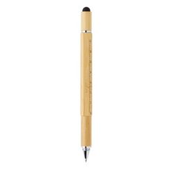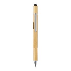 Długopis wielofunkcyjny 5 w 1, linijka 7 cm, poziomica, śrubokręt, touch pen, wykonany z bambusa, aluminiowy klip, długość pisania do 400 m, ślad węglowy produktu: 0,13 kg CO2