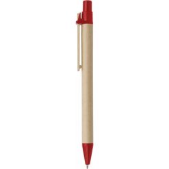 Długopis z kartonu z nadrukiem Twojego logo, materiał: plastik, karton, drewno, kolor: czerwony