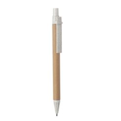 Długopis z kolorowym trzonem z kartonu z recyklingu i elementami z włókien słomy pszenicznej