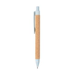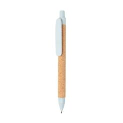 Długopis z recyklingu z nadrukiem Twojego logo, materiał: korek, słoma pszeniczna, kolor: niebieski