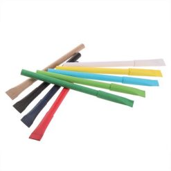 Długopis z dopasowaną kolorystycznie zatyczką, trzon z ciętym zakończeniem, wkład w niebieskim kolorze, produkt wykonany ze zrolowanego papieru