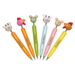 Długopis „zwierzątko” z kolorowym trzonem, występuje w 6 różnych wzorach sprzedawanych losowo, wkład w niebieskim kolorze, produkt wykonany z drewna i żelaza