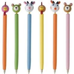 Długopis „zwierzątko” z kolorowym trzonem, występuje w 6 różnych wzorach sprzedawanych losowo, wkład w niebieskim kolorze, produkt wykonany z drewna i żelaza