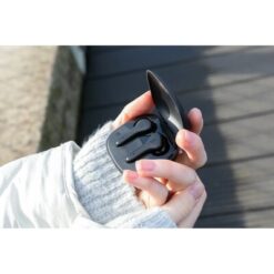 Bezprzewodowe słuchawki douszne z systemem redukcji szumów z otoczenia (ENC), który doskonale sprawdza się podczas rozmów telefonicznych, słuchawki wyposażone są w tryb niskiego opóźnienia (65 ms), dzięki któremu opóźnienie pomiędzy ekranem a dźwiękiem jest minimalizowane, wodoodporne IPX4 (całkowita ochrona przed spryskiwaniem i zachlapaniem wodą z różnych kierunków z natężeniem do 10 litrów na minutę), dotykowy panel sterowania, wbudowany mikrofon, funkcja odbierania połączeń, do 5 godzin odtwarzania na jednym ładowaniu, etui ładujące zapewnia 20 godzin odtwarzania, nie zawiera PVC, opakowanie nie zawiera plastiku, ślad węglowy produktu: 0,93 kg CO2