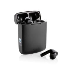 Douszne słuchawki bezprzewodowe z panelem słonecznym Skywave z nadrukiem Twojego logo, kolor: czarny