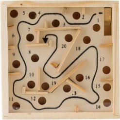 Drewniana gra zręcznościowa z plastikową ramką i metalową kulką