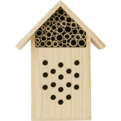 Drewniany domek dla owadów z metalowym haczykiem do zawieszenia