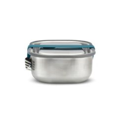 Pudełko śniadaniowe 1 L, lunchbox 3 w 1, nadaje się do przechowywania śniadania, mrożenia potraw oraz pieczenia w piekarniku, wykonane ze stali nierdzewnej z recyklingu, w komplecie łyżkowidelec, elastyczny pasek oraz przesuwana przegroda, podstawka oraz łyżkowidelec nadają się do mycia w zmywarce