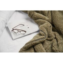 Dwuwarstwowy koc, wykonany z materiałów z recyklingu z certyfikatem GRS, całkowita zawartość materiałów z recyklingu obliczona na podstawie masy całkowitej przedmiotu: 69%, spełnia standardy normy OEKO-TEX Standard 100