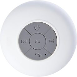 Głośnik bezprzewodowy 2W z przyssawką z nadrukiem Twojego logo, materiał: plastik, kolor: biały