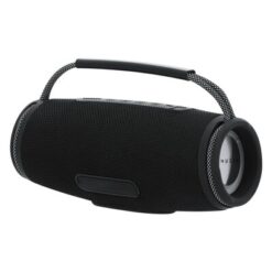 Głośnik bezprzewodowy BT 5.3, moc 2x5W, posiada silikonowy uchwyt ułatwiający noszenie, wielokolorowe światła LED oferujące 7 trybów świecenia, zintegrowany panel sterowania, bateria 1200 mAh, czytnik kart micro SD (nie dołączona), zasięg do 10 m, wejście USB, ładowany przez USB, kabel micro USB w komplecie, produkt wykonany między innymi z poliestru