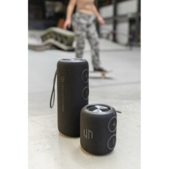 Głośnik bezprzewodowy 30 W, wodoodporny IPX7 (odporność do 1m na czas do 30 minut), uchwyt, 2 głośniki niskotonowe, możliwość sparowania dwóch głośników w celu uzyskania dźwięku stereo, do 8 godzin odtwarzania na jednym ładowaniu, wykonany z ABS i PET z recyklingu z certyfikatem RCS, całkowita zawartość materiałów obliczona na podstawie wagi całkowitej przedmiotu: 36%, ślad węglowy produktu: 0 kg CO2