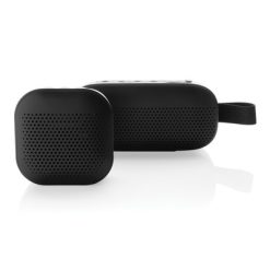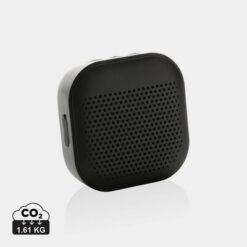 Głośnik bezprzewodowy 3W BT5.3, wodoodporny IPX4 (całkowita ochrona przed spryskiwaniem i zachlapaniem wodą z różnych kierunków z natężeniem do 10 litrów na minutę), wbudowany mikrofon, funkcja odbierania połączeń, wbudowany akumulator o pojemności 400 mAh pozwala na odtwarzanie muzyki do 3,5 godziny, zasięg do 10 m, wykonany z ABS z recyklingu z certyfikatem RCS, całkowita zawartość materiałów z recyklingu obliczona na podstawie wagi całkowitej przedmiotu: 41%, kabel z TPE z recyklingu w komplecie, w pudełku z papieru kraftowego z certyfikatem FSC® mix, ślad węglowy produktu: 1,61 kg CO2