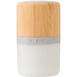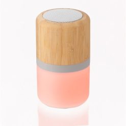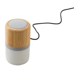 Głośnik bezprzewodowy 3W, obudowa wykonana z bambusa i ABS, kolorowe podświetlenie, wbudowany akumulator o pojemności 300 mAh pozwala na odtwarzanie muzyki do 3 godzin, kabel do ładowania w komplecie