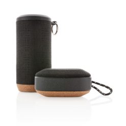 Głośnik bezprzewodowy 5W Baia z nadrukiem Twojego logo, materiał: korek, poliester, kolor: czarny