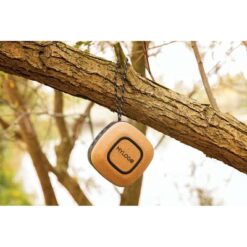 Głośnik bezprzewodowy 5W, BT 4.2, wodoodporny IPX5 (całkowita ochrona przed strumieniem wody płynącej z różnych kierunków z wydajnością do 12,5 litra na minutę), wykonany z wytrzymałej tkaniny, spód wykonany z organicznego korka, akumulator o pojemności 1000 mAh umożliwia odtwarzanie muzyki do 8 godzin, zasięg do 10 m, w trosce o środowisko naturalne opakowanie głośnika nie zawiera plastiku, wzór zastrzeżony®, ślad węglowy produktu: 2,26 kg CO2