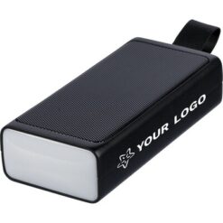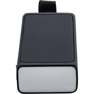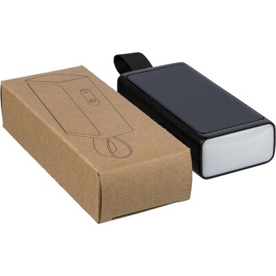 Głośnik bezprzewodowy 5W, metalowa siatka, uchwyt ułatwiający noszenie, latarka (lampka COB i LED), wejście 5v/500mA, BT5.4, bateria 500 mAh, zapakowany pojedynczo w brązowy kartonik, produkt wykonany z ABS z recyklingu, metalu i silikonu