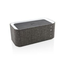 Głośnik bezprzewodowy 6W, ładowarka bezprzewodowa 5W Vogue z nadrukiem Twojego logo, materiał: plastik, poliester, kolor: szary