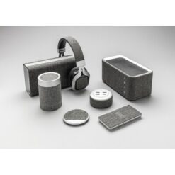 Głośnik bezprzewodowy 6W, BT 3.0, ładowarka bezprzewodowa 5W, materiałowe wykończenie, funkcja odbierania połączeń, tryb głośnomówiący, akumulator o pojemności 4000 mAh umożliwia odtwarzanie muzyki do 10 godzin lub dwukrotne naładowanie telefonu (w zależności od pojemności baterii w telefonie), wbudowany port USB do ładowania telefonów starszej generacji za pomocą kabla, bezprzewodowe ładowanie jest kompatybilne ze wszystkimi urządzeniami posiadającymi możliwość ładowania indukcyjnego, podczas używania obu funkcji urządzenie powinno być podłączone do zasilania, wejście 5V/1A, wyjście 5V/1A, zasięg do 10 m, kabel micro USB 150 cm w komplecie, wzór zastrzeżony®, ślad węglowy produktu: 7,12 kg CO2