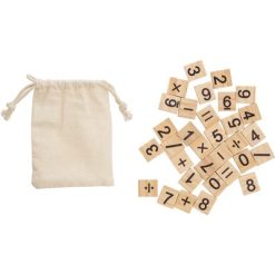 Gra edukacyjna, 32 drewniane elementy, w komplecie bawełniany woreczek ze sznurkiem