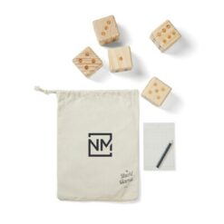Gra w kości, w komplecie kostki wykonane z drewna sosnowego z certyfikatem FSC®, notatnik i ołówek, pokrowiec i instrukcja w komplecie