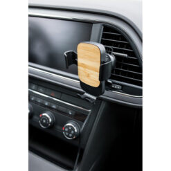 Grawitacyjny samochodowy uchwyt do telefonu, ładowarka bezprzewodowa 15W | Amberle z nadrukiem Twojego logo, materiał: plastik, bambus, kolor: czarny