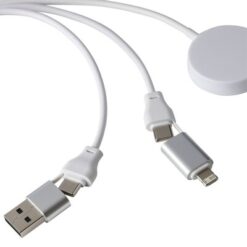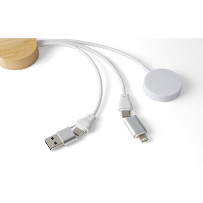 Kabel do ładowania 65W, brelok, ładowarka do smartwatcha, końcówki USB-A, USB-C, kompatybilna z urządzeniami iOS, zapakowany pojedynczo w brązowy kartonik, produkt wykonany z TPE, metalu i bambusa