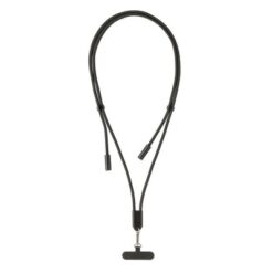 Kabel do ładowania, smycz do telefonu LoopAmp z nadrukiem Twojego logo, materiał: rpet, kolor: czarny