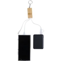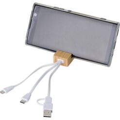 Kabel do ładowania, stojak na telefon z nadrukiem Twojego logo, materiał: metal, bambus, tpe, kolor: brązowy