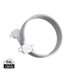Kabel do ładowania i synchronizacji, 4 końcówki: 2 x USB typu C, USB i kompatybilna z iOS, dzięki magnetycznej konstrukcji kabel nie plącze się, szybkość ładowania za pomocą końcówek USB C do USB C do 65W, nadaje się do ładowania laptopa, wykonany z ABS z recyklingu, całkowita zawartość materiałów z recyklingu obliczona na podstawie wagi całkowitej produktu: 55%