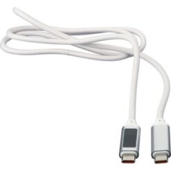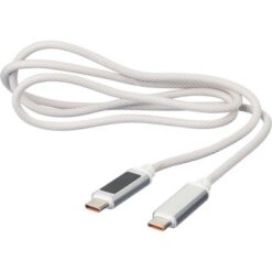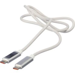 Kabel do ładowania i przesyłania danych 65W, o długości 1 metra, USB-C na USB-C, niebieska kontrolka prędkości ładowania na gnieździe, zmieści się w kieszeni, produkt wykonany z tkaniny nylonowej i aluminium