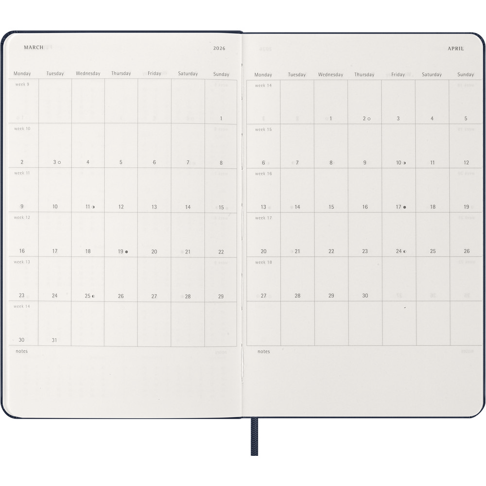 Kalendarz duży (ok. A5, large) MOLESKINE z notatnikiem, twarda okładka, tygodniowy (144 str.), zakładka i elastyczna opaska do zamykania