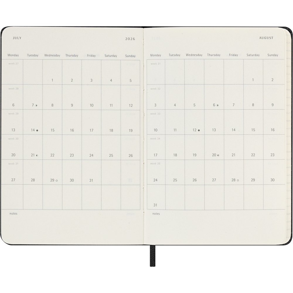 Kalendarz kieszonkowy (ok. A6, pocket) MOLESKINE, twarda okładka, tygodniowy, horyzontalny (144 str.), zakładka i elastyczna opaska do zamykania