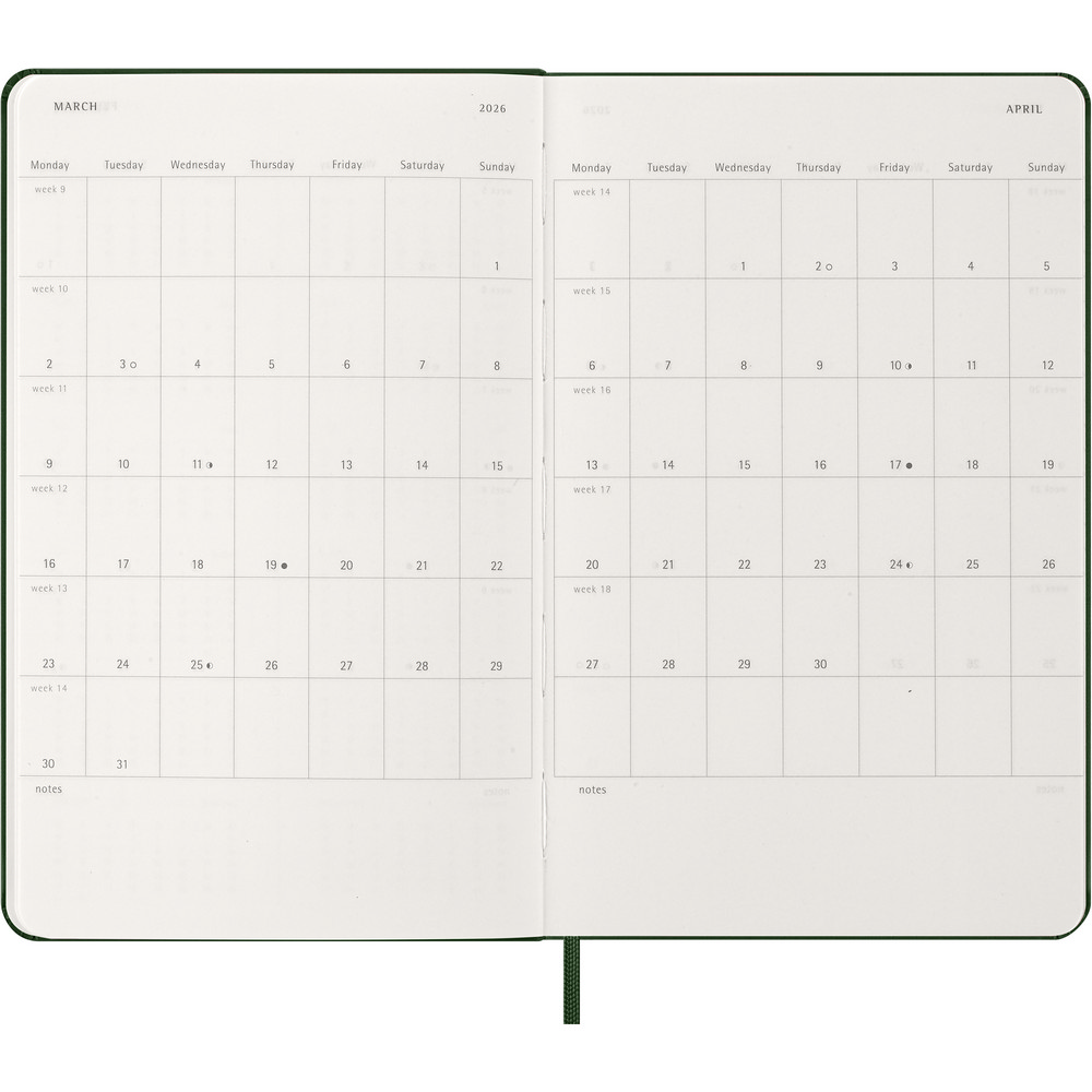 Kalendarz duży (ok. A5, large) MOLESKINE, twarda okładka, dzienny (400 str.), zakładka i elastyczna opaska do zamykania