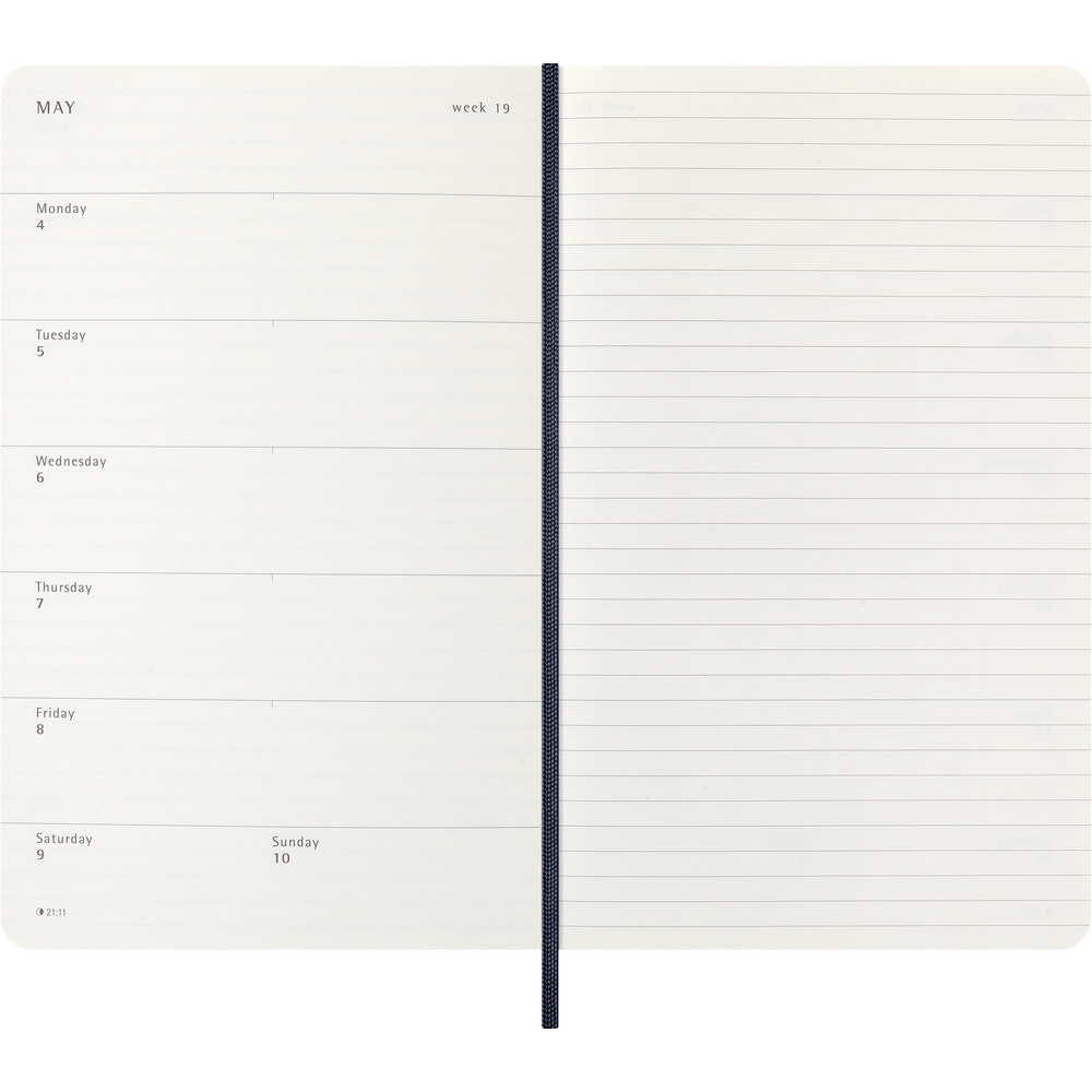 Kalendarz duży (ok. A5, large) MOLESKINE z notatnikiem, miękka okładka, tygodniowy (144 str.), zakładka i elastyczna opaska do zamykania