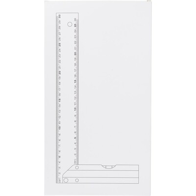 Kątownik 30 cm, poziomica, pomiar w cm, zapakowany pojedynczo w brązowy kartonik, produkt wykonany z aluminium