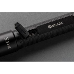 Kieszonkowa latarka Gear X, ładowana przez USB, aluminium z recyklingu z nadrukiem Twojego logo, materiał: aluminium, pc, kolor: czarny