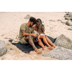 Koc piknikowy, duża kieszeń z przodu, wykonany z RPET pochodzącego w 100% z recyklingu, dzięki zastosowaniu technologii śledzącej AWARE™ wykorzystane włókna są identyfikowalne z pochodzenia, rozmiar 150×130 cm, 2% wpływów z każdego sprzedanego produktu z kolekcji Impact jest przekazywane na rzecz Water.org