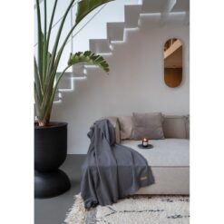Koc z frędzlami, tkany, wykonany z przędzy Polylana®, która pochodzi z recyklingu, dzięki zastosowaniu technologii AWARE™ wykorzystane materiały są identyfikowalne z pochodzenia, wymiar 130 x150 cm, 2% wpływów z każdego sprzedanego produktu jest przekazywane na rzecz Water.org,