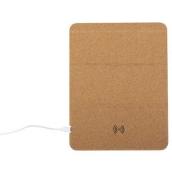 Korkowa podkładka pod mysz, ładowarka bezprzewodowa 5W, stojak na telefon z nadrukiem Twojego logo, materiał: welur, korek, kolor: neutralny